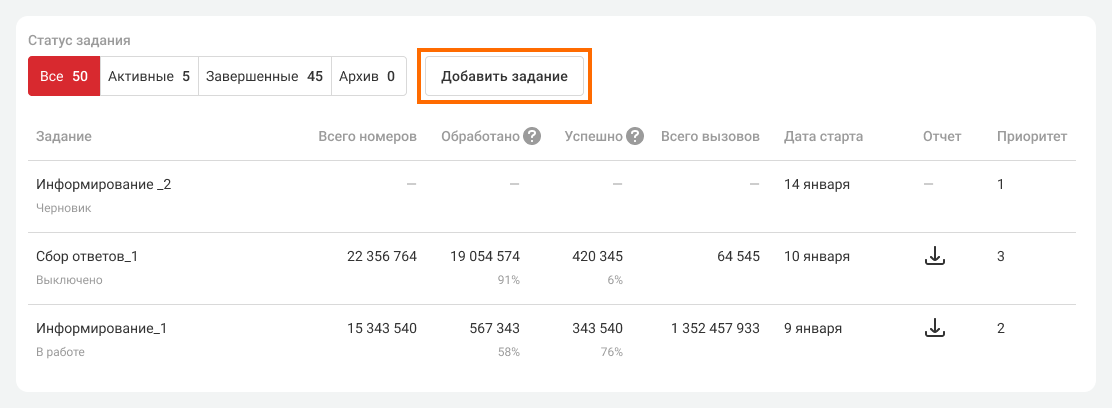 Подробнее о том, как создать и настроить задание читайте здесь.