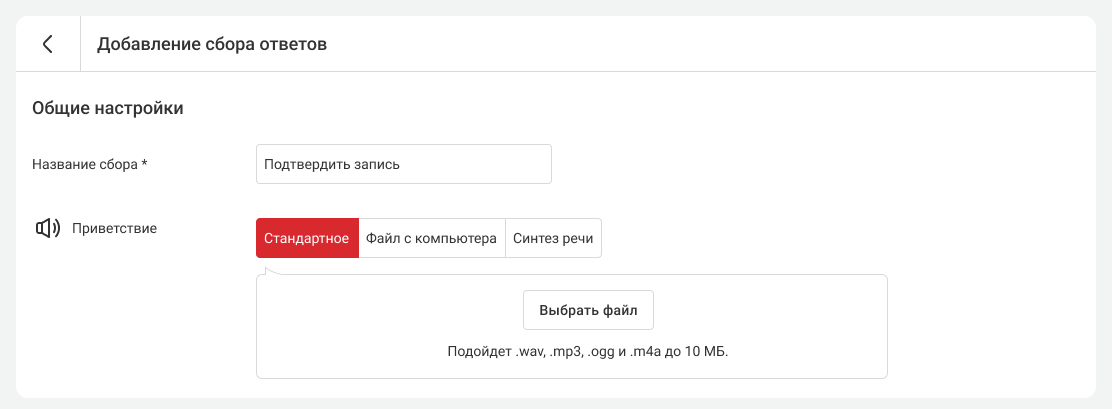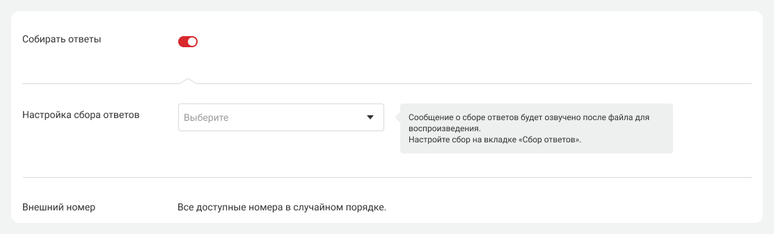3. Включите настройку «Собирать ответы». В этом случае клиент сначала услышит аудиосообщение из задания на автоинформирование, а затем – приглашение пройти опрос.