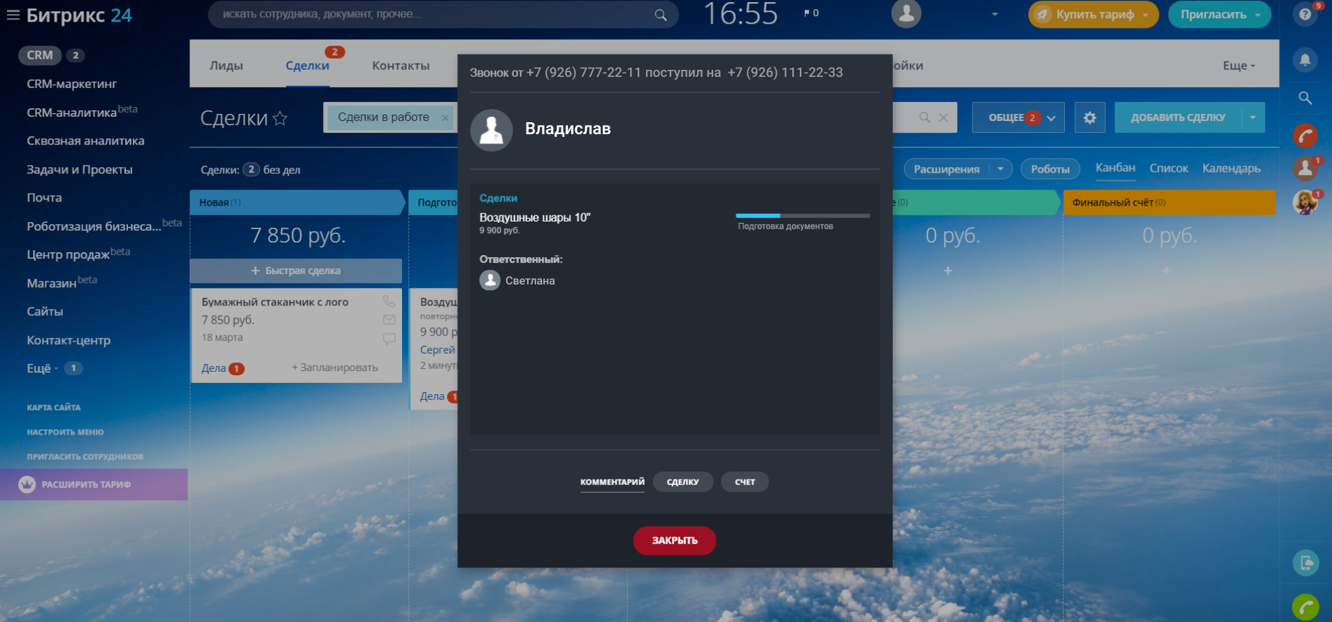 Рекомендуем после каждого разговора фиксировать в карточке клиента важную информацию о клиенте и договоренностях с ним, а также создавать задачи, чтобы вовремя перевести сделку на следующий этап.6. Автоматическое соединение клиента с персональным менеджером