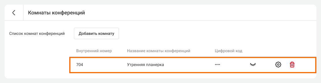 Готово. Теперь вы можете увидеть созданную комнату конференций в списке комнат.