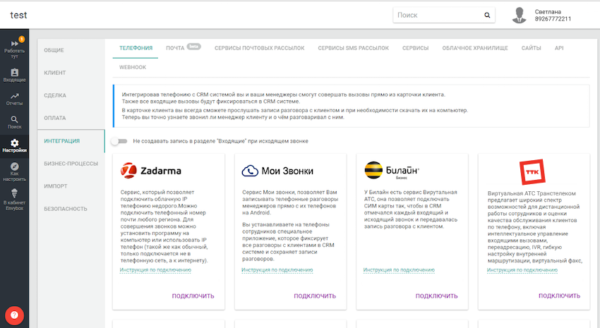 Интеграция EnvyCRM и Виртуальной АТС