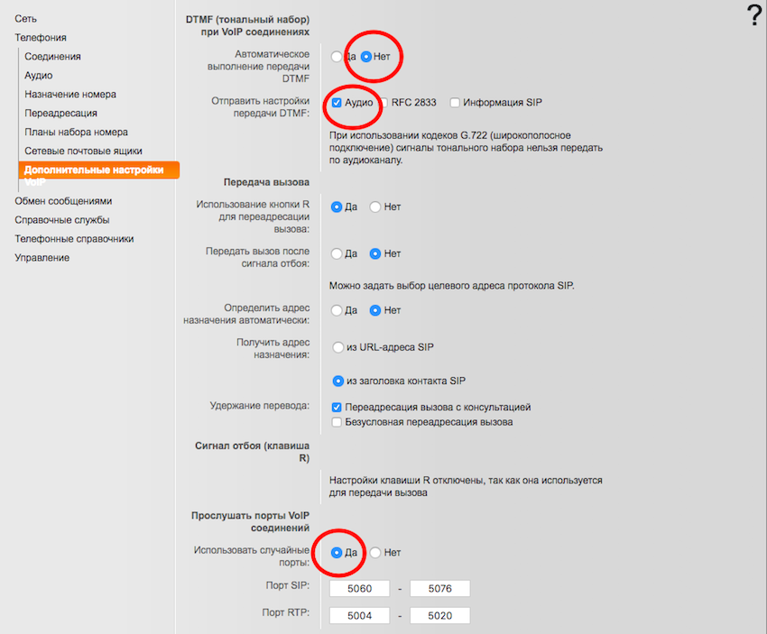 Перейдите в «Дополнительные настройки VoIP». Скорректируйте настройки согласно скриншоту ниже .