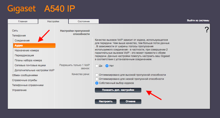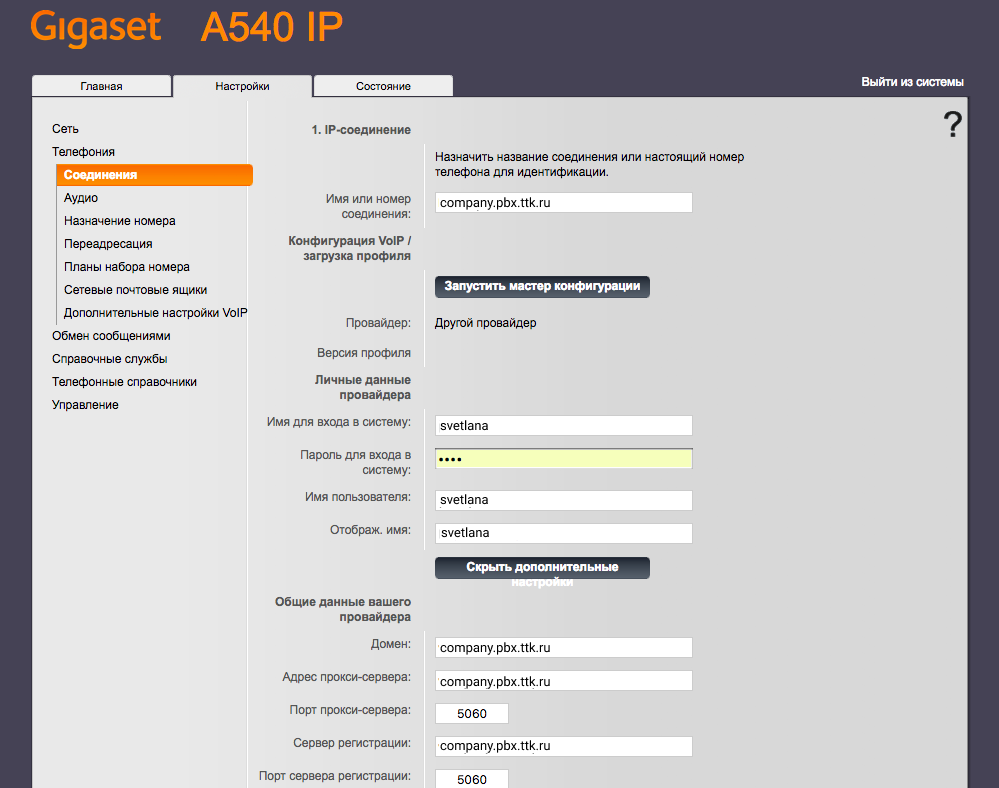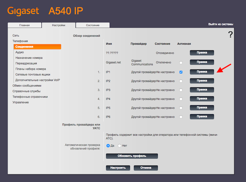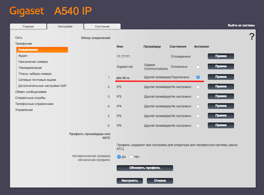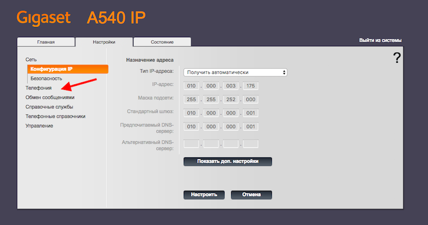 Инструкция по настройке телефонов Gigaset (модели A540IP, C560H, C530A IP, A540 H, К 650Р PRO, S650H PRO)