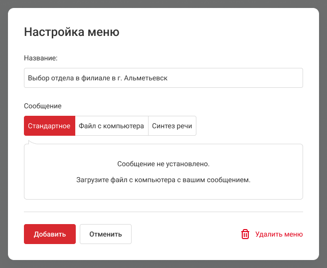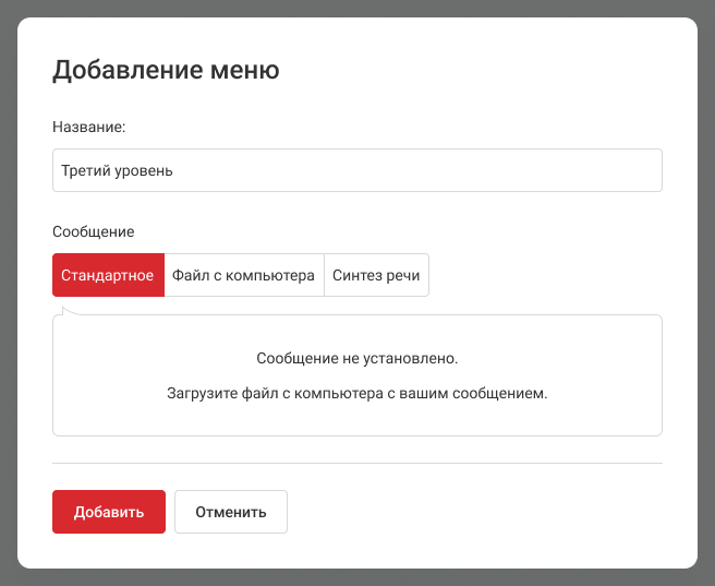 4. Голосовое приветствие настраивается отдельно для каждого уровня меню. Выберите приветствие для второго уровня меню и нажмите «Добавить».