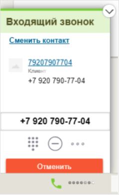 При входящем звонке всплывает карточка клиенты. Менеджер может по ходу или по окончании звонка вносить комментарии к звонку или перейти в карточку.
