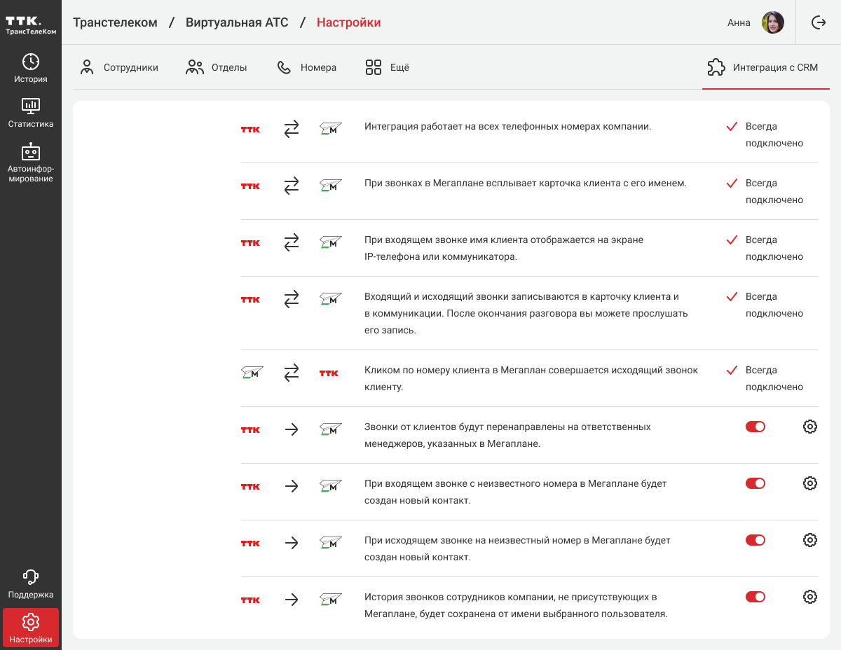 Инструкция по интеграции Мегаплан и Виртуальной АТС
