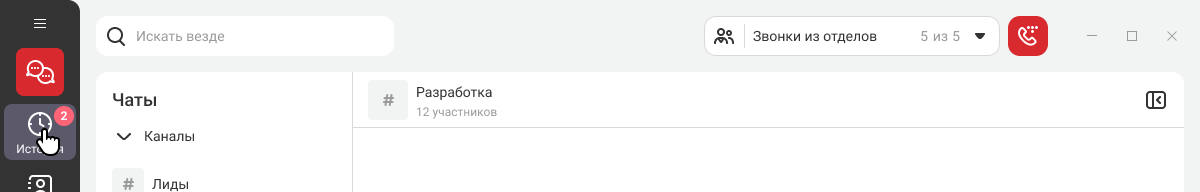 На иконке истории в боковом меню отображается общее число пропущенных звонков, как личных, так и по вашему отделу.