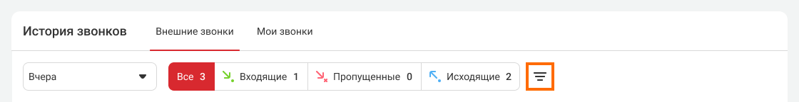 Нажмите на кнопку «Фильтры», чтобы открыть панель фильтров. С ее помощью можно отфильтровать звонки не только по клиентам и сотрудникам, но и: