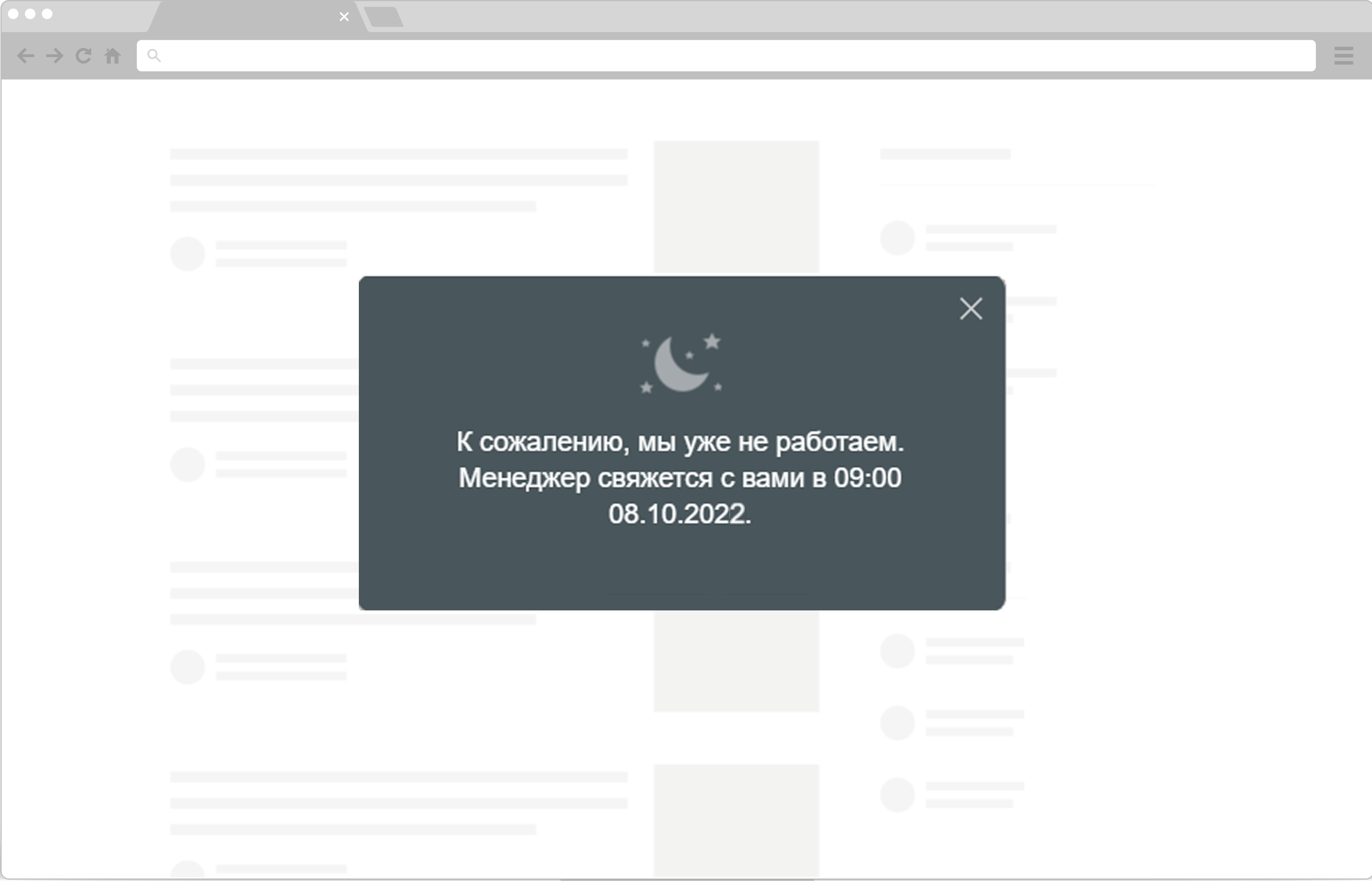 Вы все равно его не потеряете. После заказа обратного звонка с сайта виджет сообщит клиенту, что ваши сотрудники с ним свяжутся в рабочие часы.