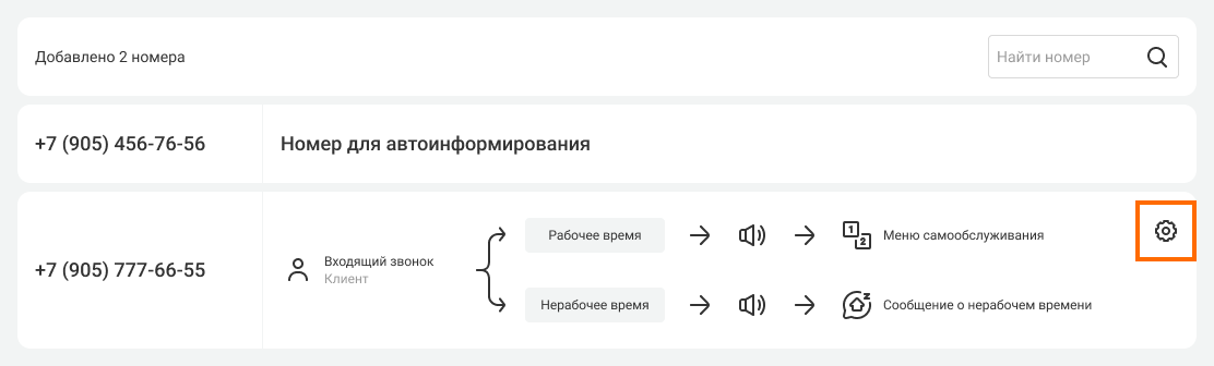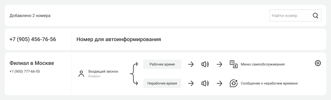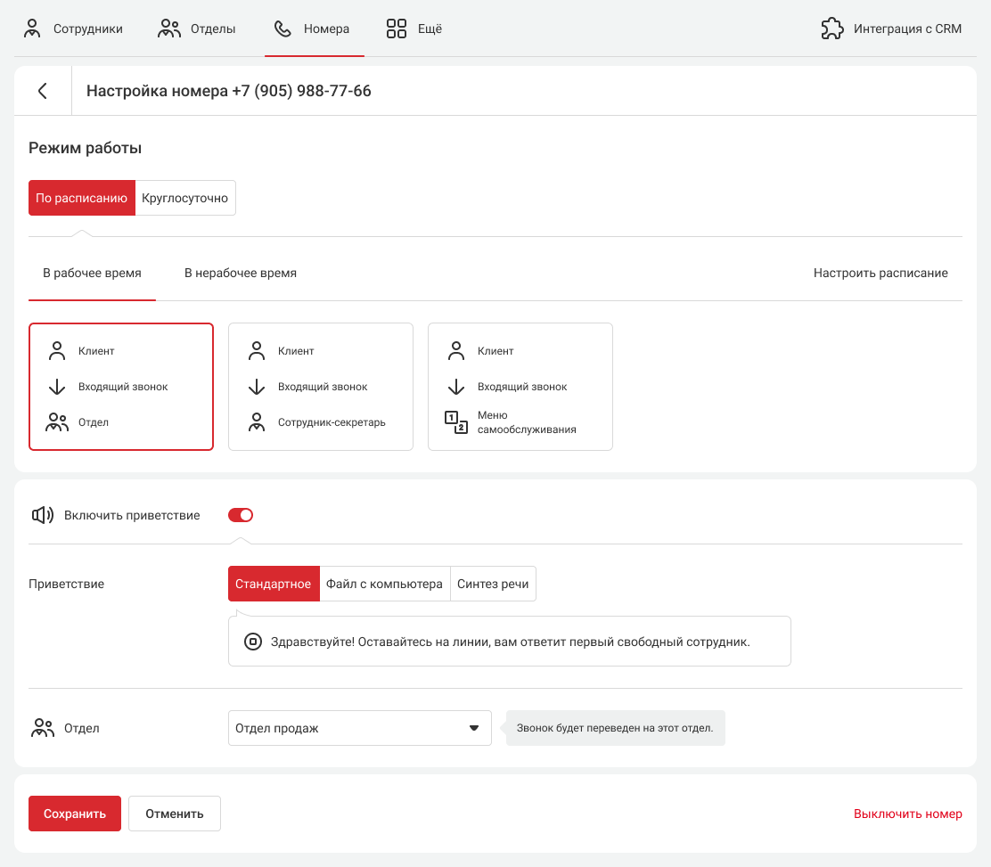 Для каждого номера Виртуальной АТС и подключенных номеров других операторов можно сделать свои уникальные настройки.