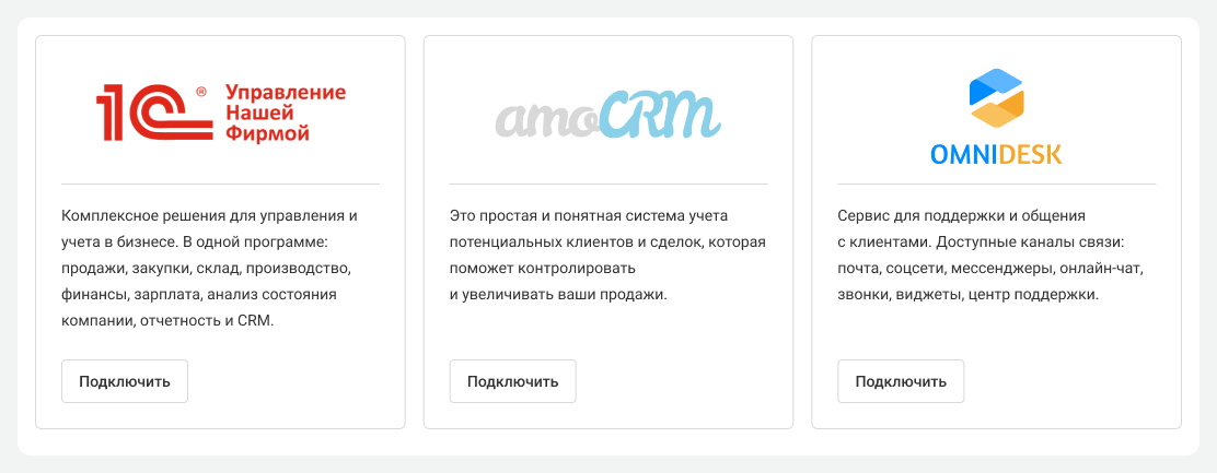 В Omnidesk зайдите в аккаунт администратора, перейдите в «Настройки» — «Интеграции» — «Добавить интеграцию».