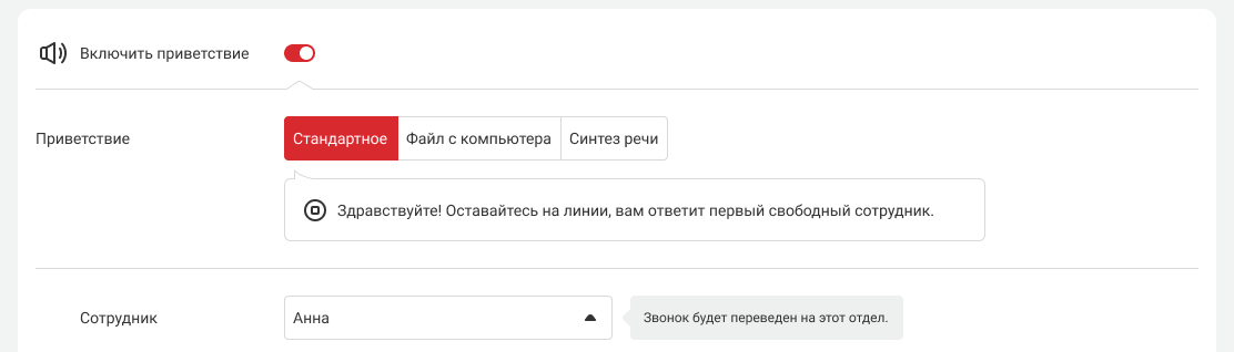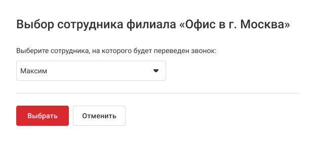 • Если это Виртуальная АТС, то выберите сотрудника в раскрывающемся списке.