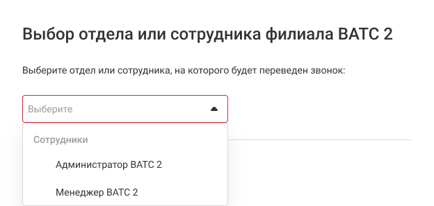 3.Ниже в раскрывающемся списке «Сотрудник или отдел» выберите другую АТС.