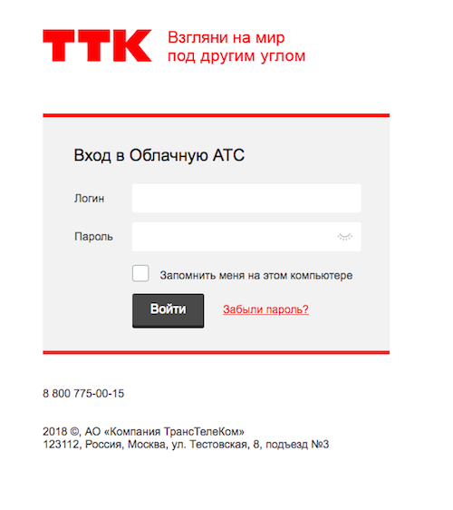 В процессе настройки через виджет вы переадресовываетесь на страницу авторизации Виртуальной АТС