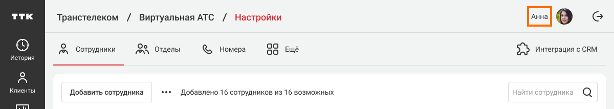 Возможности личного кабинета ВАТС не зависят от уровня доступа. Все, что описано ниже, настраивается одинаково у администраторов, пользователей и ограниченных пользователей.