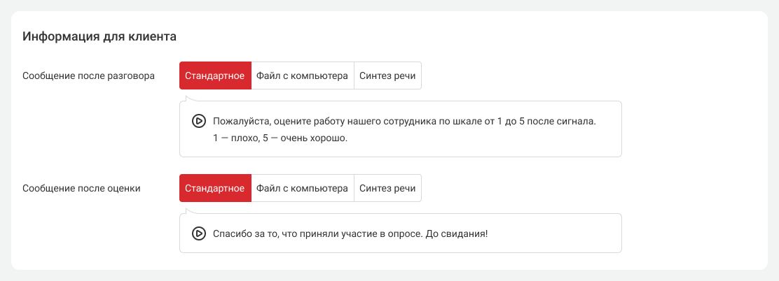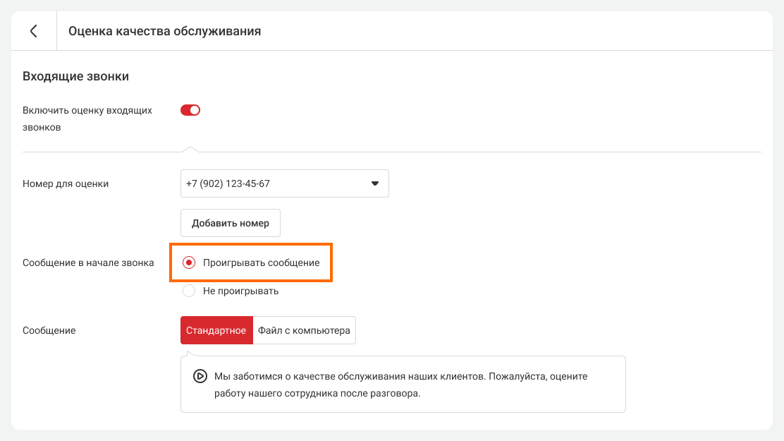 3. Чтобы получить больше оценок, предупредите клиента о том, что в конце разговора попросите его оценить качество обслуживания ー включите сообщение в начале звонка.