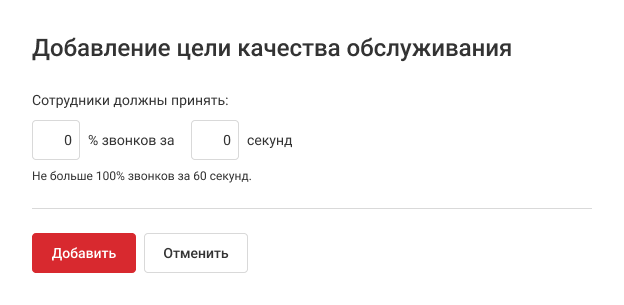 • Качество обслуживания – процент звонков, у которых время ожидания ответа не превысило целевое значение.