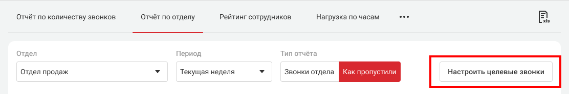 Это успешные вызовы, в которых сотрудники отдела разговаривали с клиентами столько, сколько предусмотрено для целевых звонков. Если в рамках одного звонка было несколько разговоров с сотрудниками отдела, то при определении целевого берется самый длинный разговор.