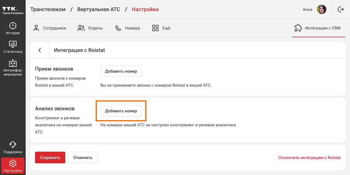 Если вы подключили номера в Roistat, свяжите их с номерами Виртуальной АТС. Вы сможете анализировать звонки с номеров Roistat в Истории и Статистике ВАТС, а за переадресацию таких звонков на ваши мобильные телефоны платить не придется.
