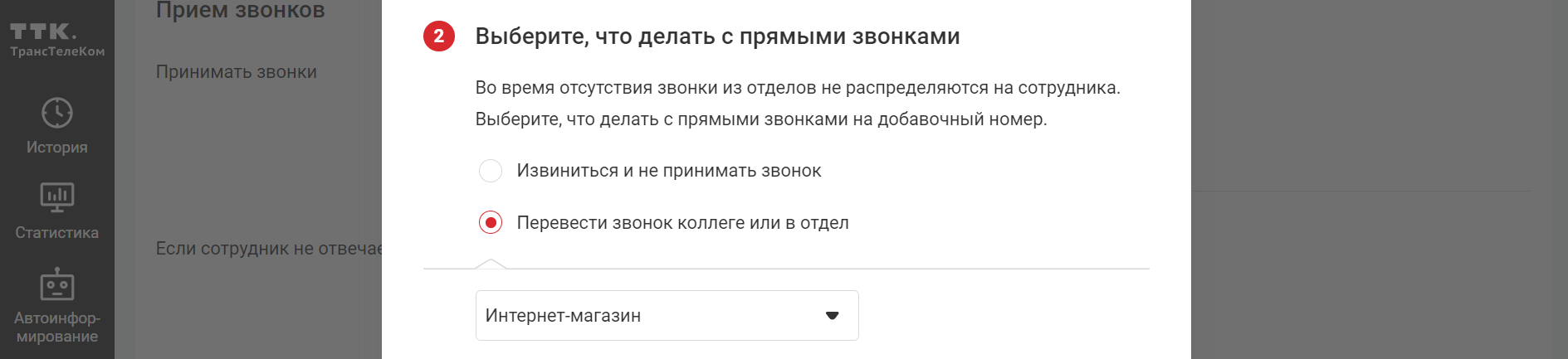 4. Выберите, как должны распределяться звонки во время отсутствия сотрудника. АТС может: