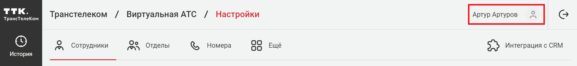 Менеджер с любым уровнем доступа может самостоятельно настраивать периоды своего отсутствия в АТС. Для этого ему нужно зайти в настройки своего профиля.