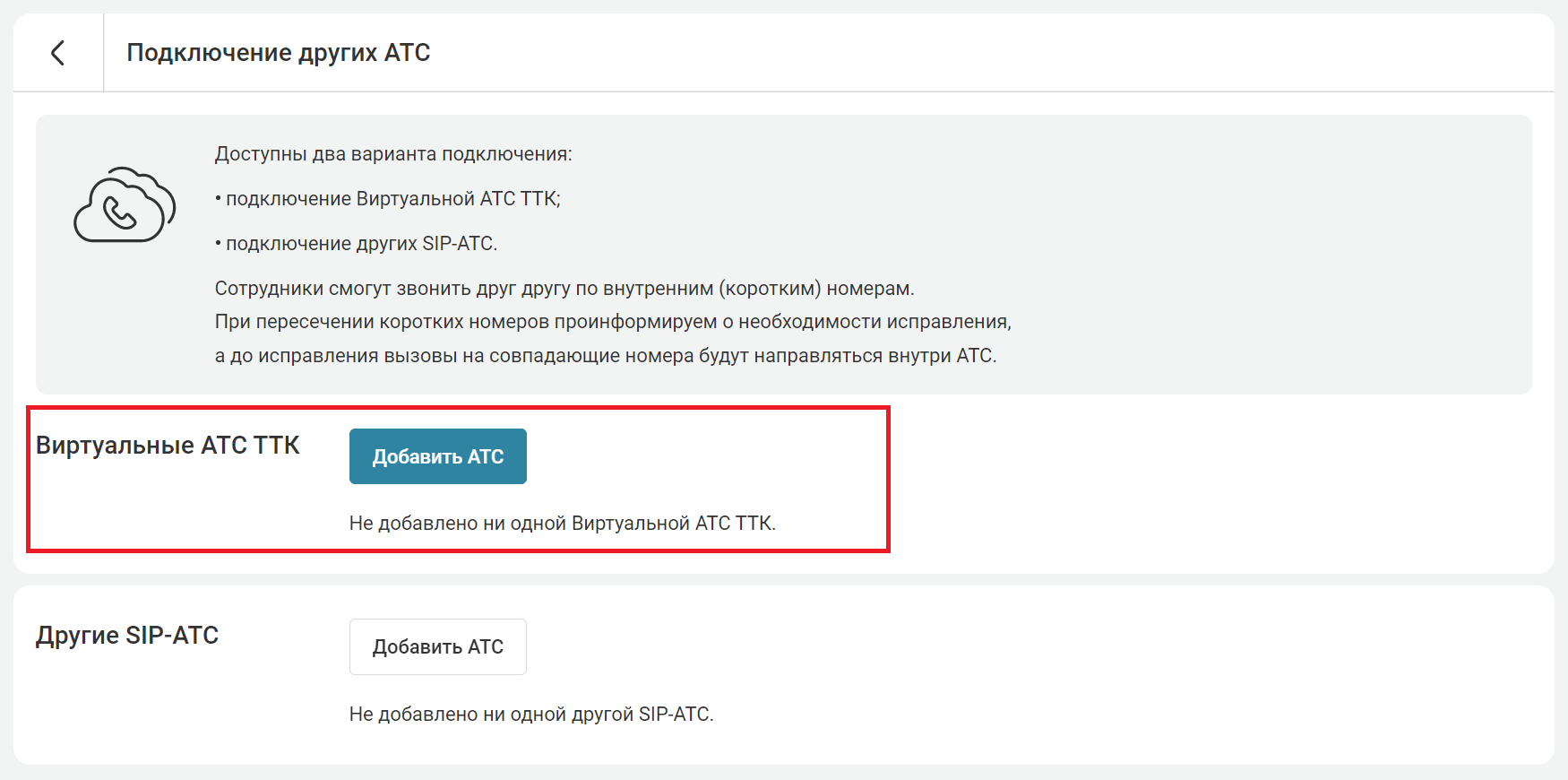 2. Нажмите «Добавить АТС».