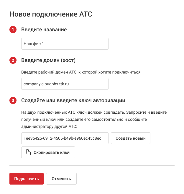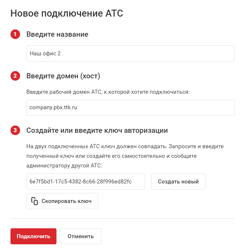 • Домен — адрес той Виртуальной АТС, которую хотите подключить.