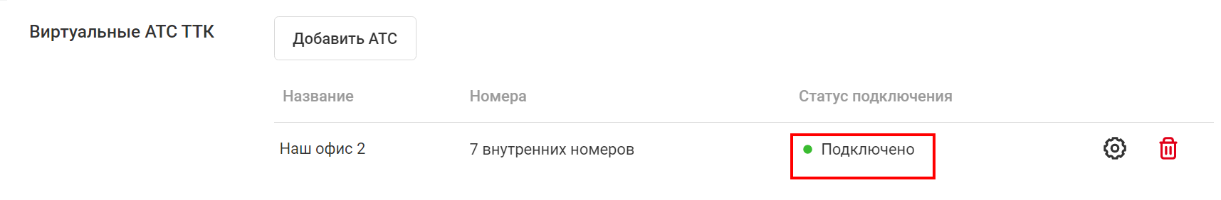 • Название — название той АТС, которую хотите добавить. Для удобства можете вписать название филиала или город.