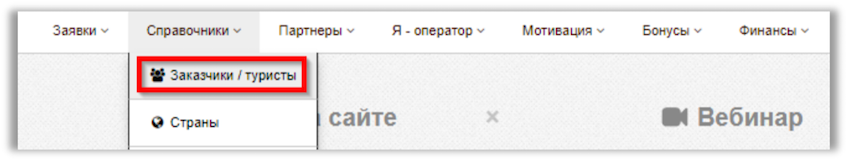 Откройте в U-ON вкладку «Справочники» - «Заказчики / туристы».