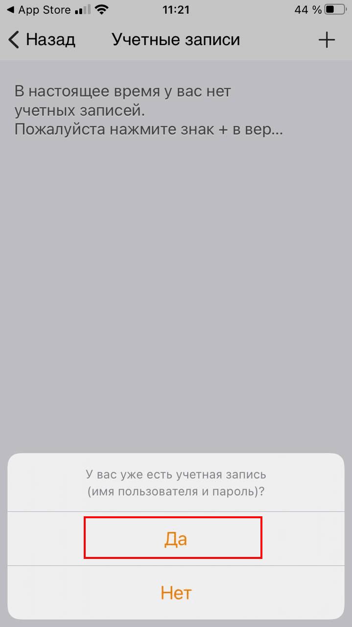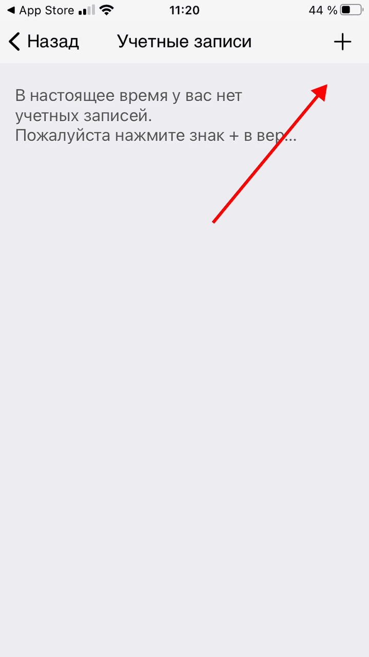 3. Создайте новый аккаунт в приложении, нажав на плюс справа вверху.