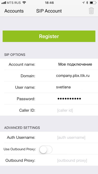 Настройка приложения на iPhone