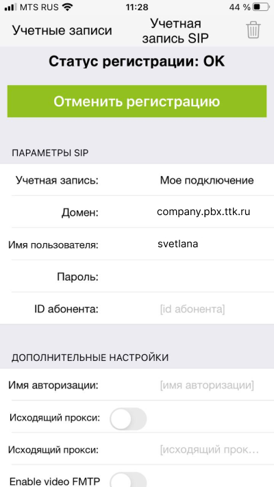 4. Подтвердите, что у вас есть учетная запись (та, которую вы создали в Виртуальной АТС).