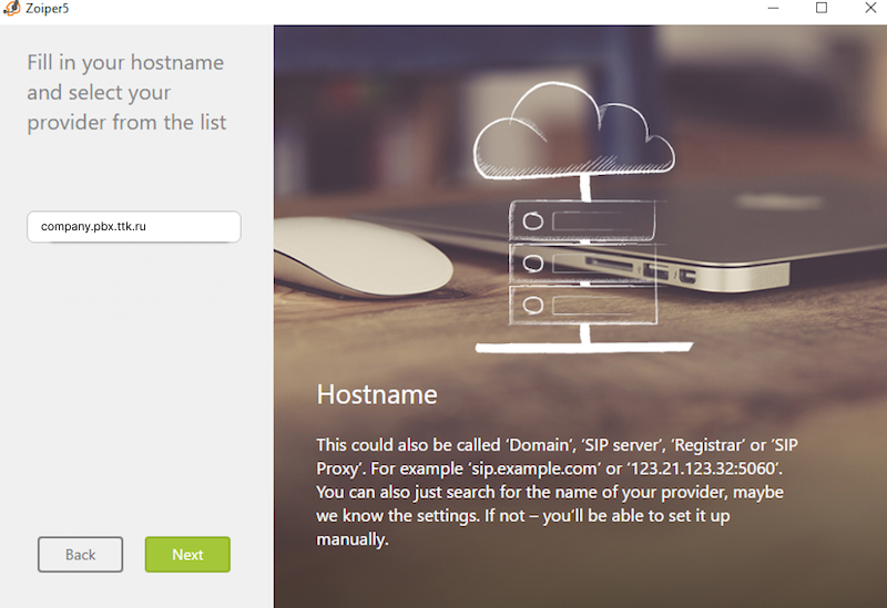 3. Введите адрес вашей ВАТС, нажмите Next («Далее»).